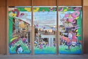 窓ガラスにkitpasという画材を使って描くアートです。